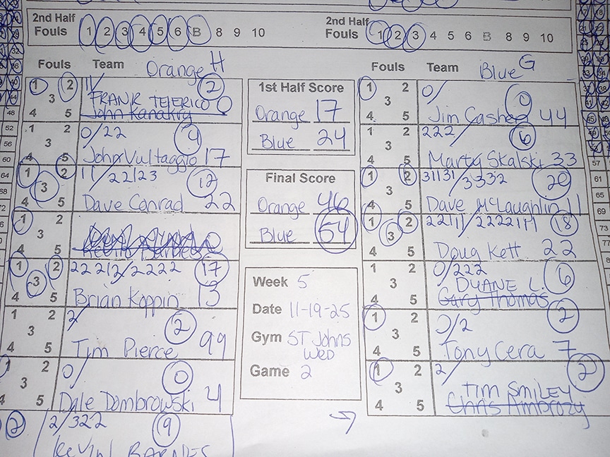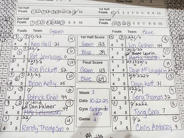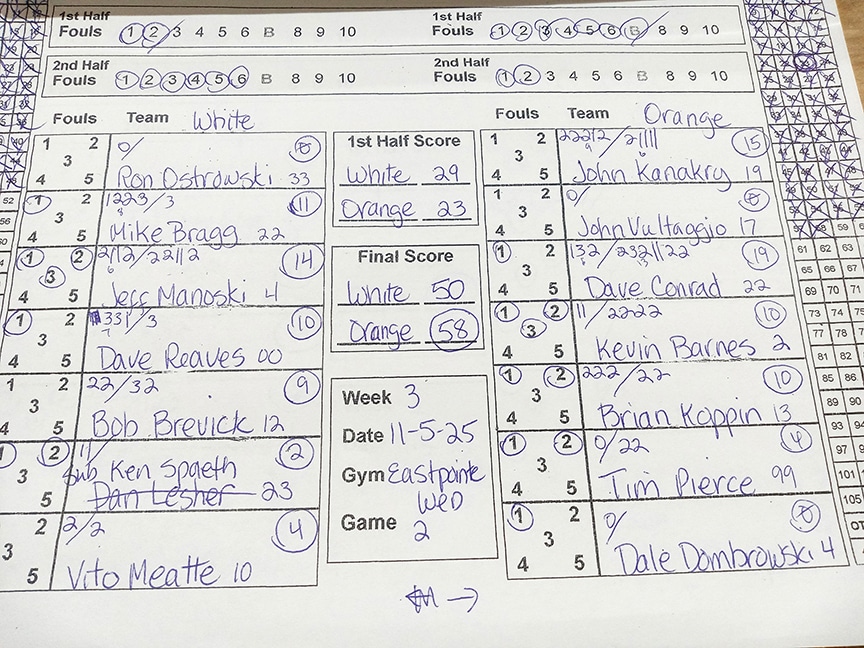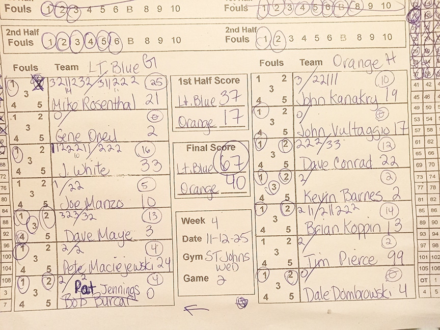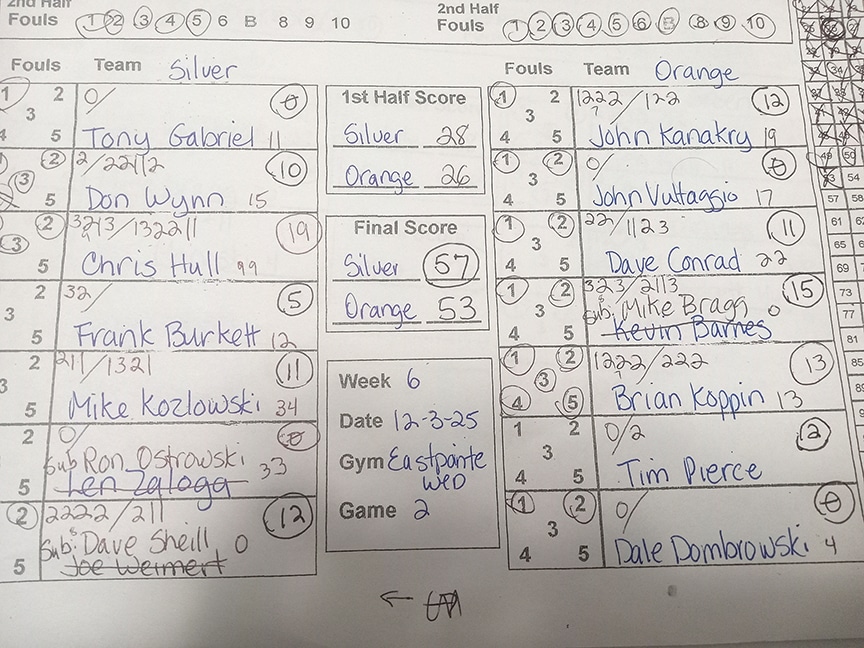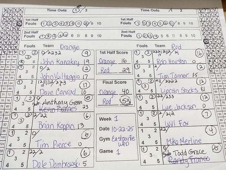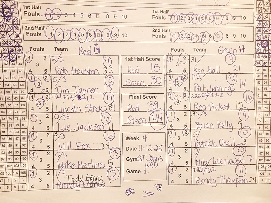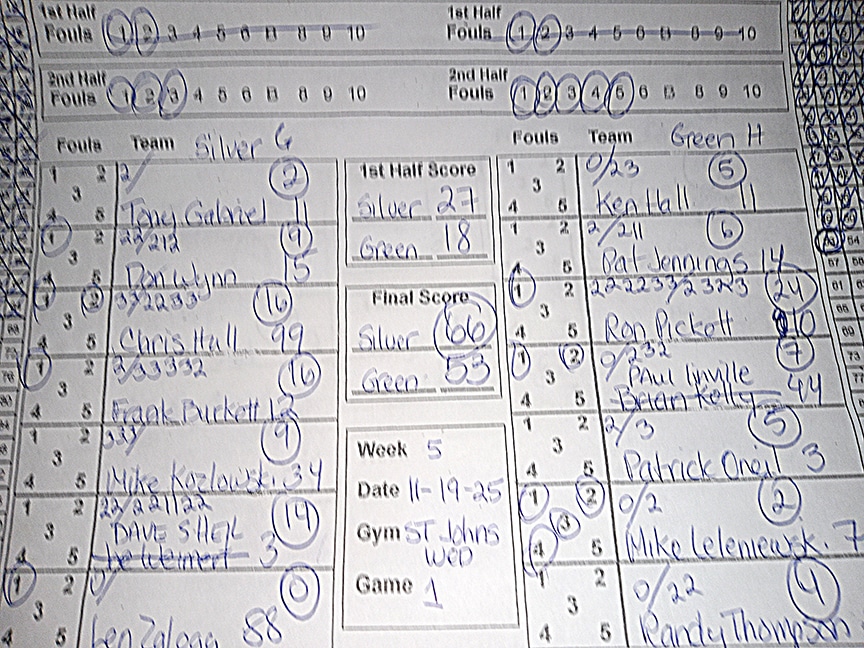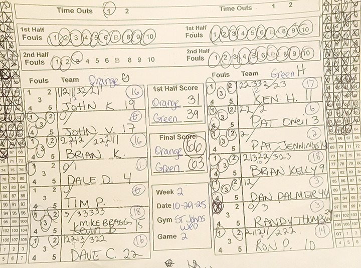 GAME B- Orange 53, Green 51, OT (scorebook)
