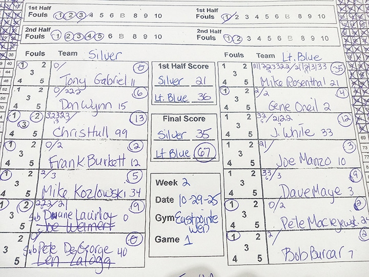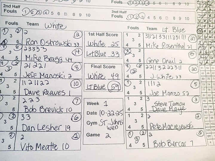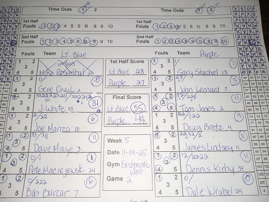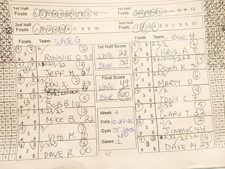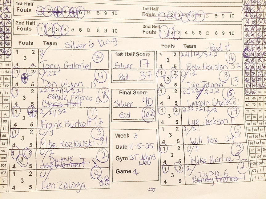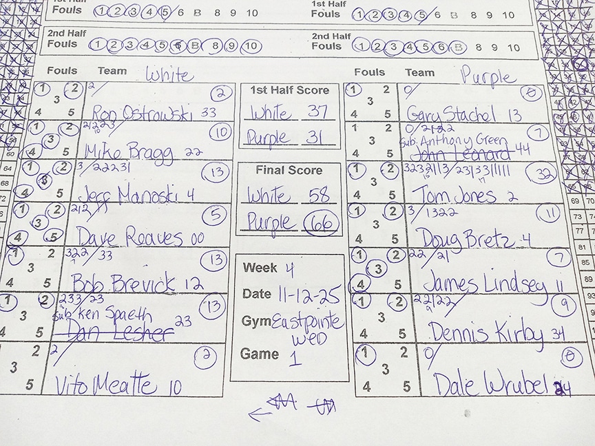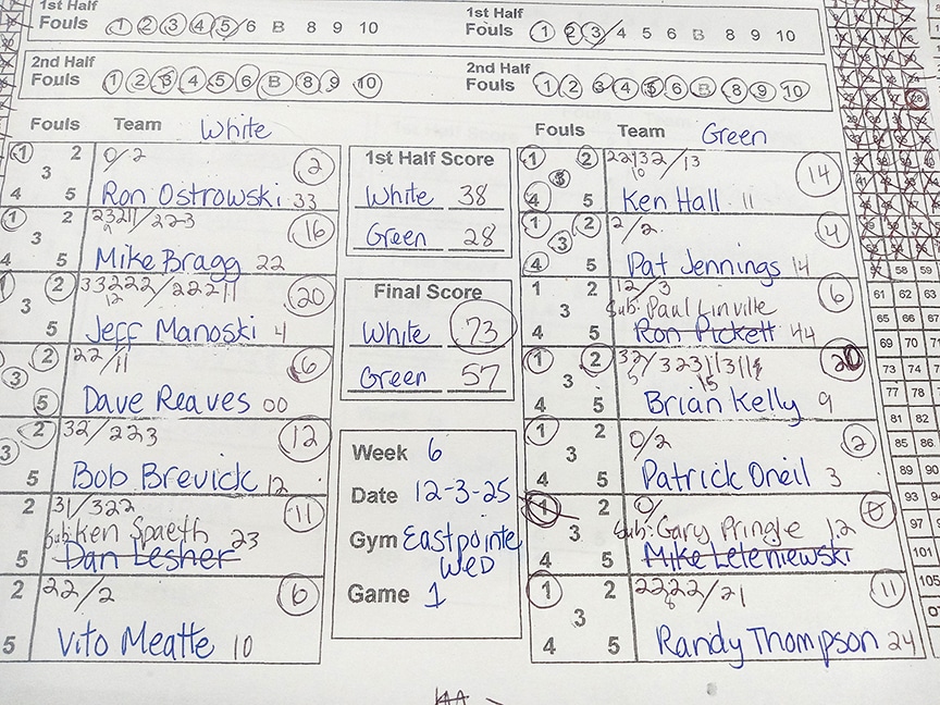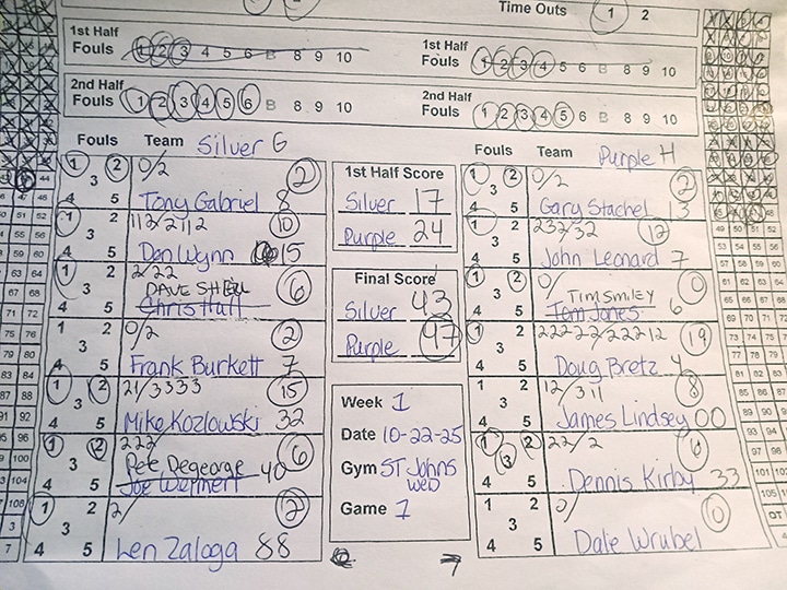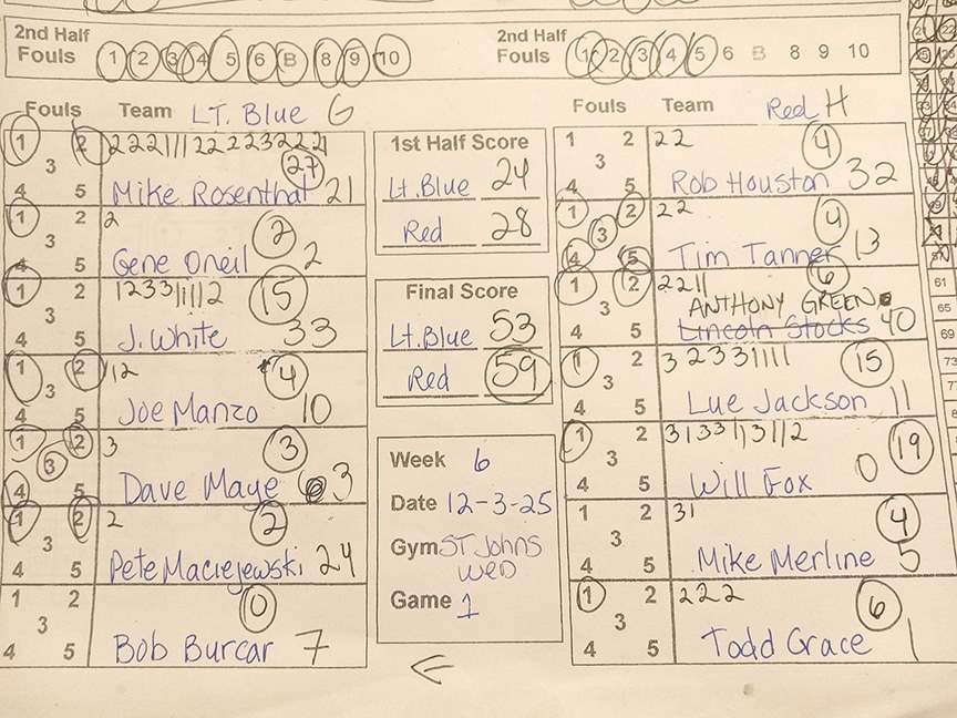 GAME B- Orange 53, Green 51, OT (scorebook)