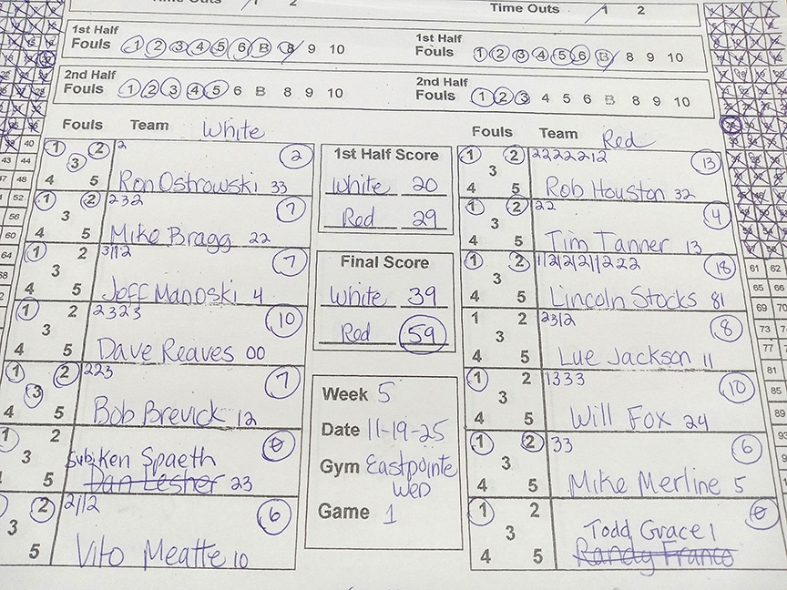 GAME D- Semi #1: Red 53, White 48 (scorebook)